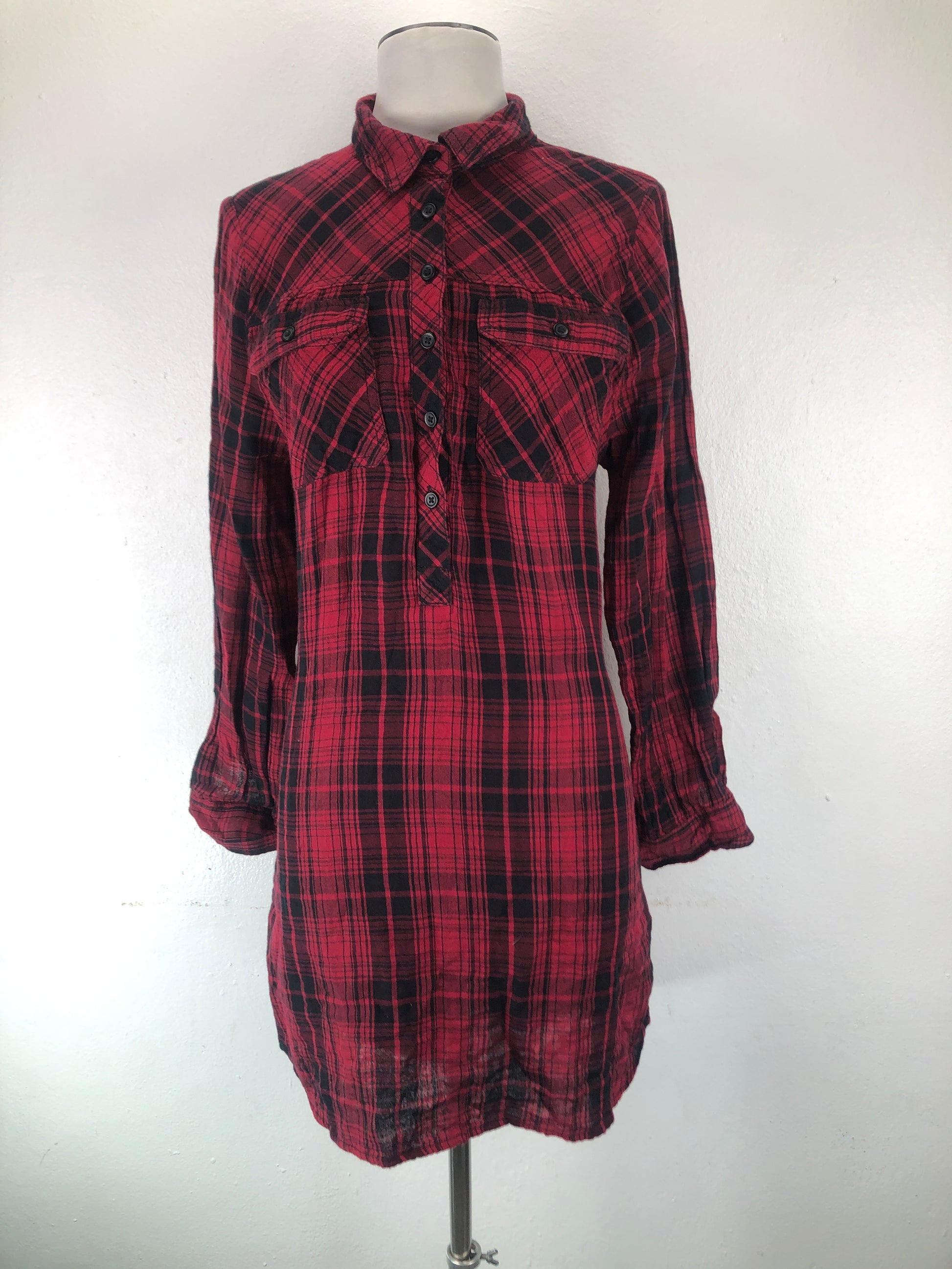 Vestido Tipo Camisero Rojo vino de Cuadro Beach Lunch Lounge